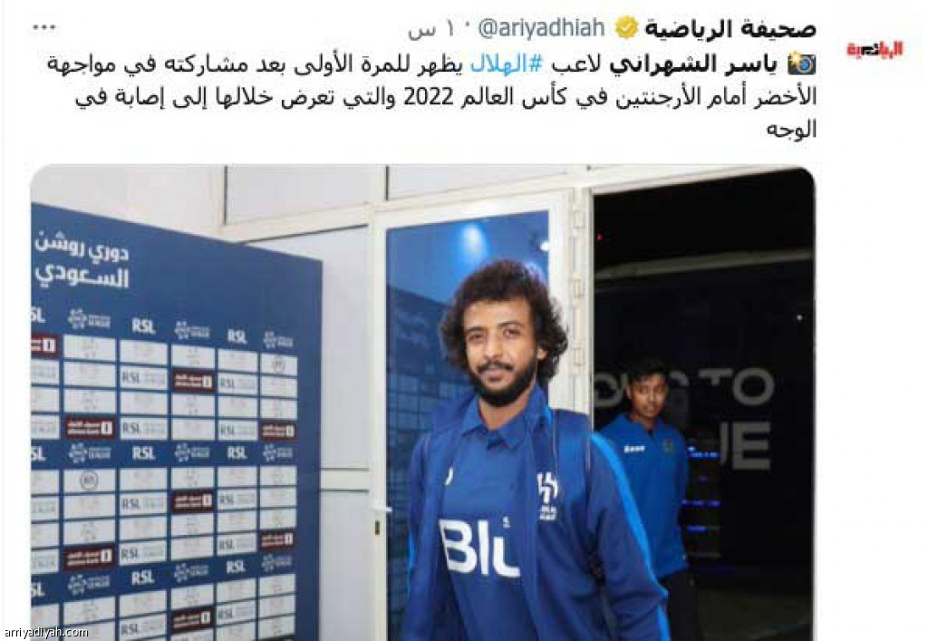 فيما أثنى آخرون على المستويات التي كان يقدمها قبل الإصابة، مثل محمد الذي عدّ: “الشهراني أفضل ظهير أيسر بتاريخ الرياضة السعودية عودته مهمة للمنتخب والهلال”، وعلى غراره وصف عايد العليوي: “عودة ياسر الشهراني مطمئنة ومريحة للقلب”، ومثله كتب بندر الوقيت: “خبر عودة ياسر الشهراني في أهم منعطف في الموسم مفرح جدًا”، مضيفًا: “ياسر يعطي قوة للجهة اليسار ويعطي أريحية كبيرة للجناح اللي معاه”.