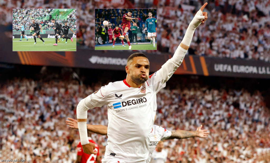 وسجل النصيري في الدقيقتين “8 و81”، والمدافع الفرنسي لويك باديه “47”، أهداف الفريق الأندلسي الذي ضرب موعدًا أمام يوفنتوس الإيطالي في المربع الذهبي. ويملك إشبيلية الرقم القياسي في عدد ألقاب البطولة، إذ فاز بها 6 مرات من أصل 16 مشاركة. من جهته، عبر يوفنتوس الإيطالي بصعوبة إلى نصف نهائي المسابقة أمس، بتعادله مع مضيفه سبورتينج البرتغالي 1ـ1 في إياب الدور ربع النهائي، مستفيدًا من فوزه ذهابًا بهدف نظيف. وبكّر اليوفي في افتتاح التسجيل “9” عن طريق لاعب الوسط الفرنسي أدريان رابيو. لكن اللاعب نفسه ارتكب ركلة جزاء انبرى لها لاعب الوسط الإنجليزي ماركوس إدواردز “20”. وفي المباراة الثالثة اكتسح باير ليفركوزن الألماني مضيفه يونيون سان جيلواز البلجيكي 4ـ1، بعد أن خرج بالتعادل ذهابًا 1ـ1، ليواجه روما الإيطالي في المربع الذهبي. وتقدم ليفركوزن عن طريق الجناح الفرنسي موسى ديابي “2”، والمدافعين الهولنديين ميتشل باكر “37” وجيريمي فريمبونج “a60” والمهاجم التشيكي آدم هلوزيك “79”. وسجل أصحاب الأرض هدفهم بواسطة المهاجم الفنلندي كاسبر تيرهو “64”. من جهته، فاز روما الإيطالي على ضيفه فينورد الهولندي 4ـ1، ليتأهل إلى نصف النهائي ويلاقي باير ليفركوزن الألماني. وكانت مباراة الذهاب في روتردام الهولندية انتهت بفوز فينورد 1- 0. نظيف. وتقدم روما عن طريق لاعب الوسط ليوناردو سبينازولا “60”، وأدرك المهاجم البرازيلي إيجور جيلرمي التعادل “80”. وسجل المهاجم الأرجنتيني باولو ديبالا الهدف الثاني لروما “89” ليتم اللجوء إلى شوطين إضافيين، وقع فيهما أصحاب الأرض هدفين واسطة المهاجم ستيفان الشعراوي “101”، ولاعب الوسط لورينزو بيلجريني “109”.