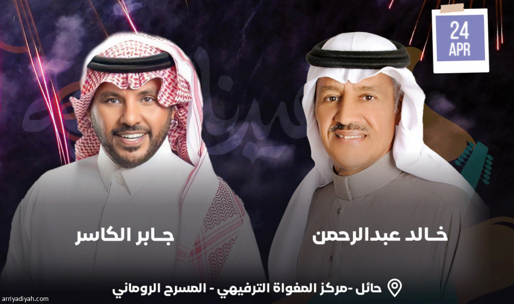 يستضيف المسرح الروماني بمركز المغواة الترفيهي في حائل اليوم الحفل الغنائي الذي يحييه خالد عبد الرحمن وجابر الكاسر، ضمن احتفالات عيد الفطر المبارك، التي تنظمها الهيئة العامة للترفيه في عدد من المناطق.