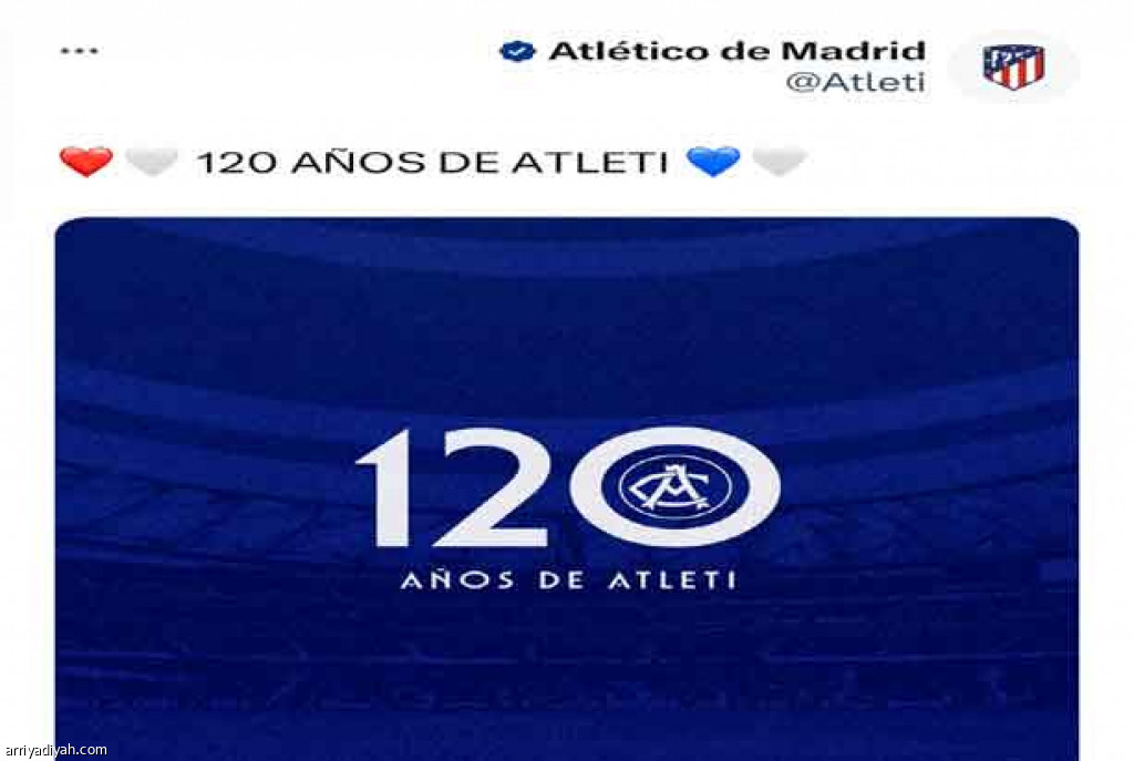 احتفل حساب أتلتيكو مدريد الإسباني، عبر “تويتر”، أمس، بمناسبة تأسيس النادي قبل 100 عام، ونالت التدوينة 157 ردًا، و1.9 ألف إعادة تغريد، و6.6 ألف إعجاب، و527 ألف مشاهدة.