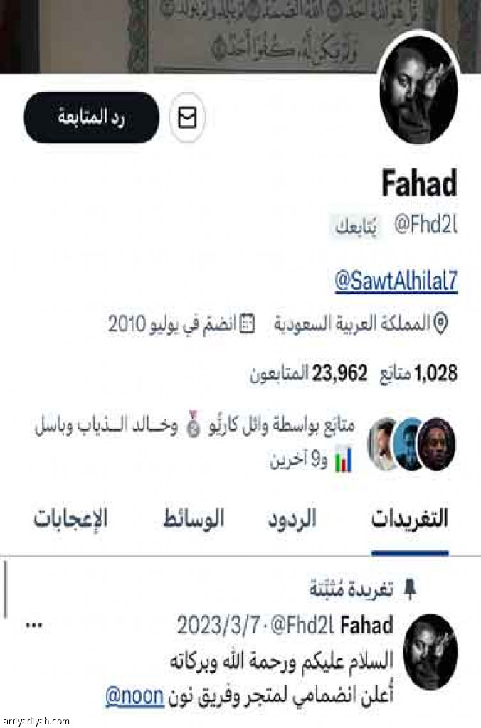يعدُّ المغرد فهد، الذي يتابعه نحو 23 ألفًا في منصة “تويتر”، من المحبين لرياضة كرة القدم.. وفي حواره مع “الرياضية”، تحدَّث عن بداياته في “تويتر”، والهدف الذي لا ينساه.