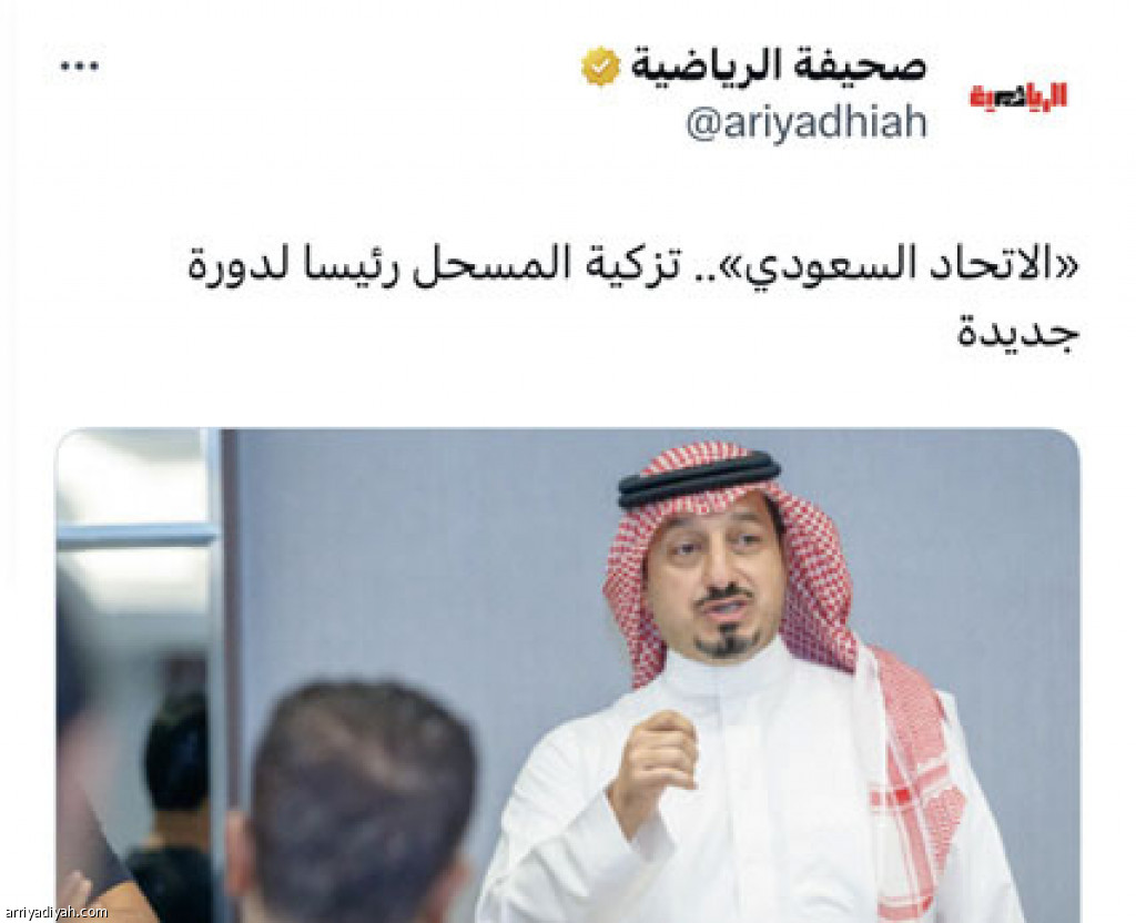تفاعل مستخدمو موقع التدوينات القصيرة “تويتر”، مع تزكية ياسر المسحل رئيسًا للاتحاد السعودي لكرة القدم، لمدة أربعة أعوام مقبلة، بوجودها في المرتبة الخامسة بالترند السعودي، بواقع 2.7 ألف تغريدة.