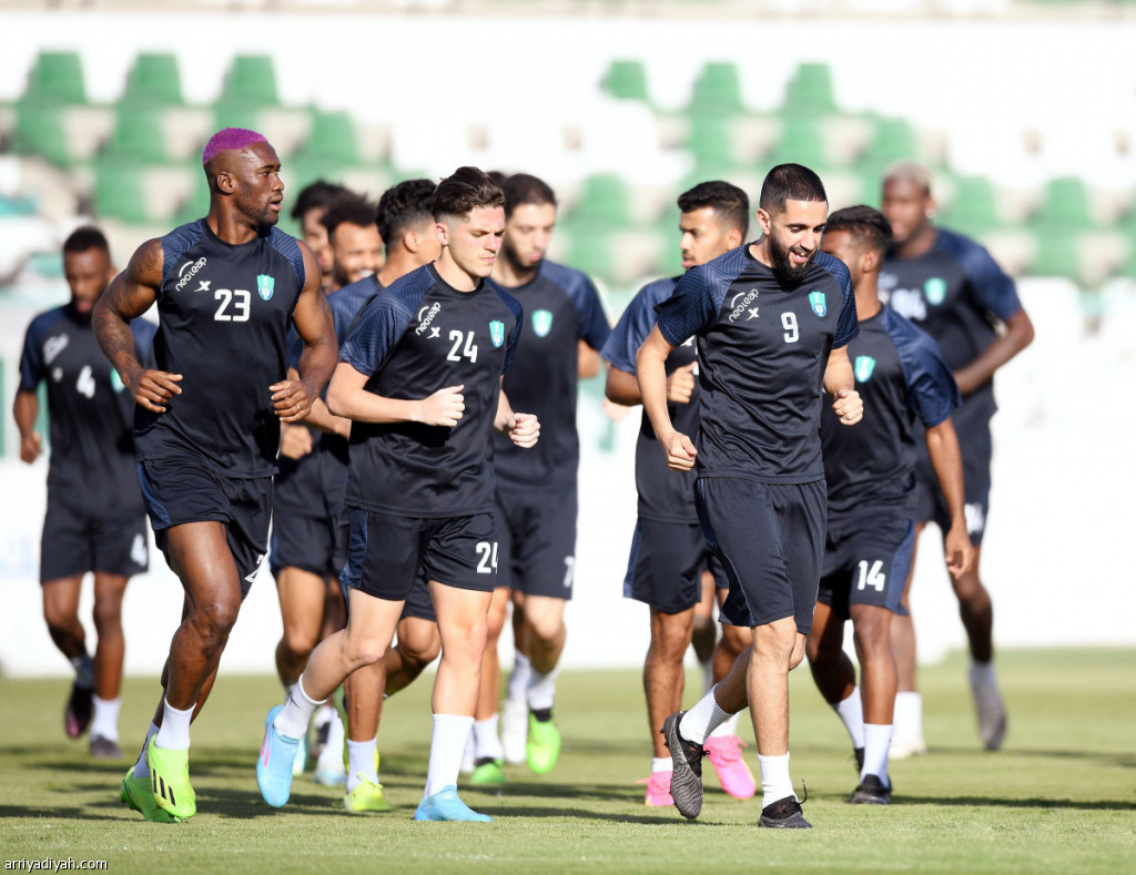 صورة التقطت أمس للاعبي فريق الأهلي الأول لكرة القدم خلال الحصة التدريبية(المركز الإعلامي ـ الأهلي)