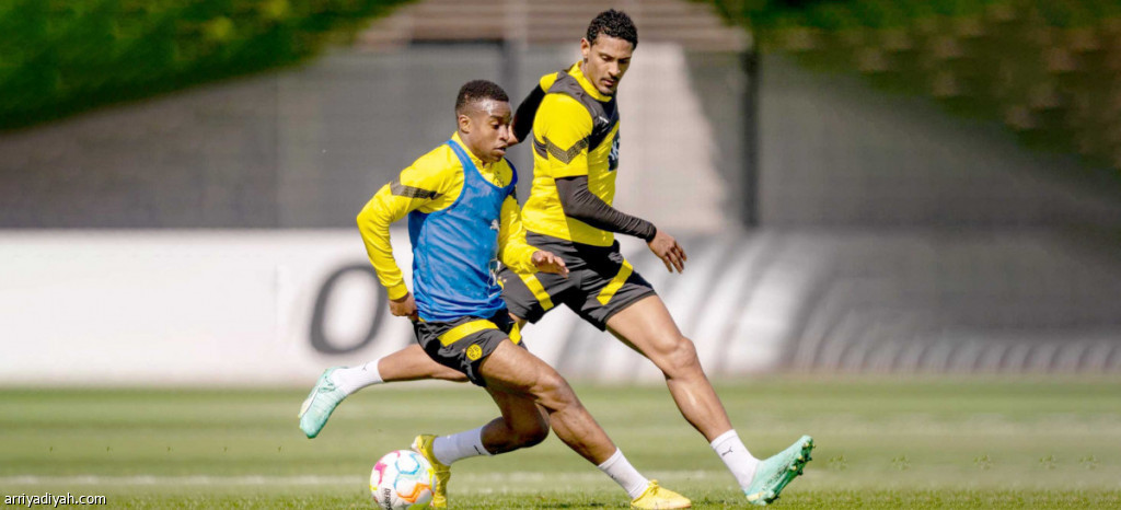 صورة التقطت أمس للألماني يوسوفا موكوكو لاعب دورتموند يحاول المرور من هالر زميله خلال الحصة التدريبية (المركز الإعلامي ـ دورتموند)