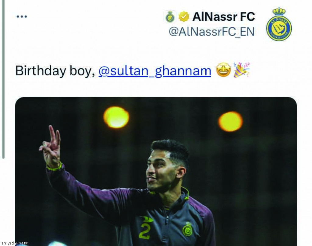 هنأ حساب نادي النصر الرسمي، عبر “تويتر”، أمس الأول، سلطان الغنام ظهير الفريق الأول لكرة القدم، بمناسبة يوم ميلاده.