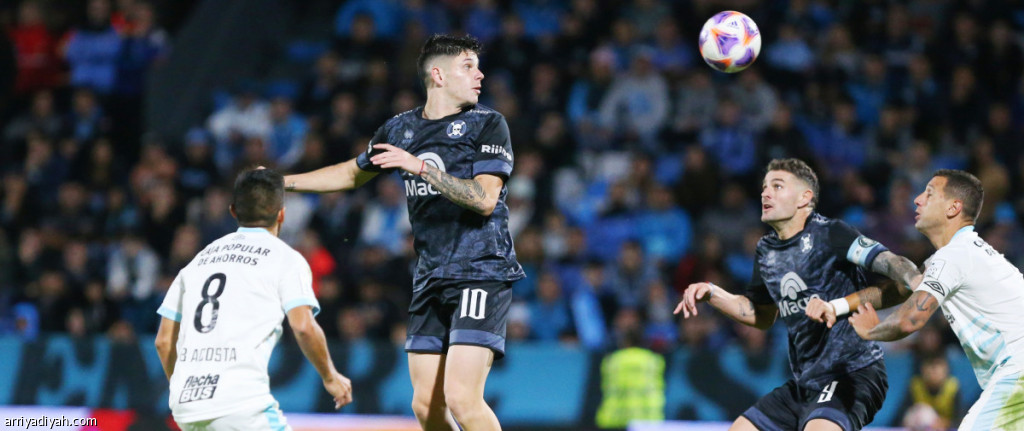 صورة التقطت أمس للاعبَين من فريق بيلجرانو الأول لكرة القدم أثناء تنافسهما أمام لاعبَين من فريق أتلتيكو توكومان خلال اللقاء الذي جمع بينهما في الدوري الأرجنتيني (تويتر بيلجرانو)