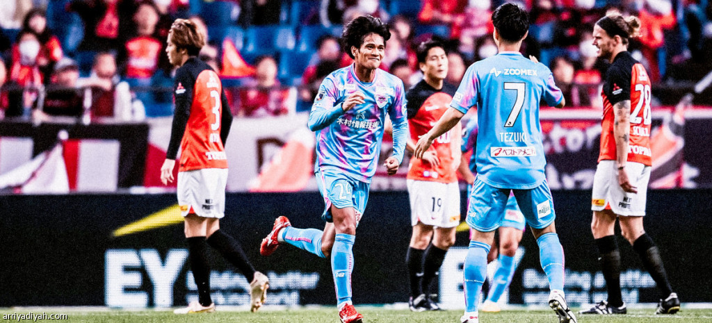 صورة التقطت أمس للاعب فريق ساجان توسو الياباني الأول لكرة القدم، بعدما سجل الهدف الثاني في مباراتهم أمام أوراوا (المركز الإعلامي ـ ساجان توسو)