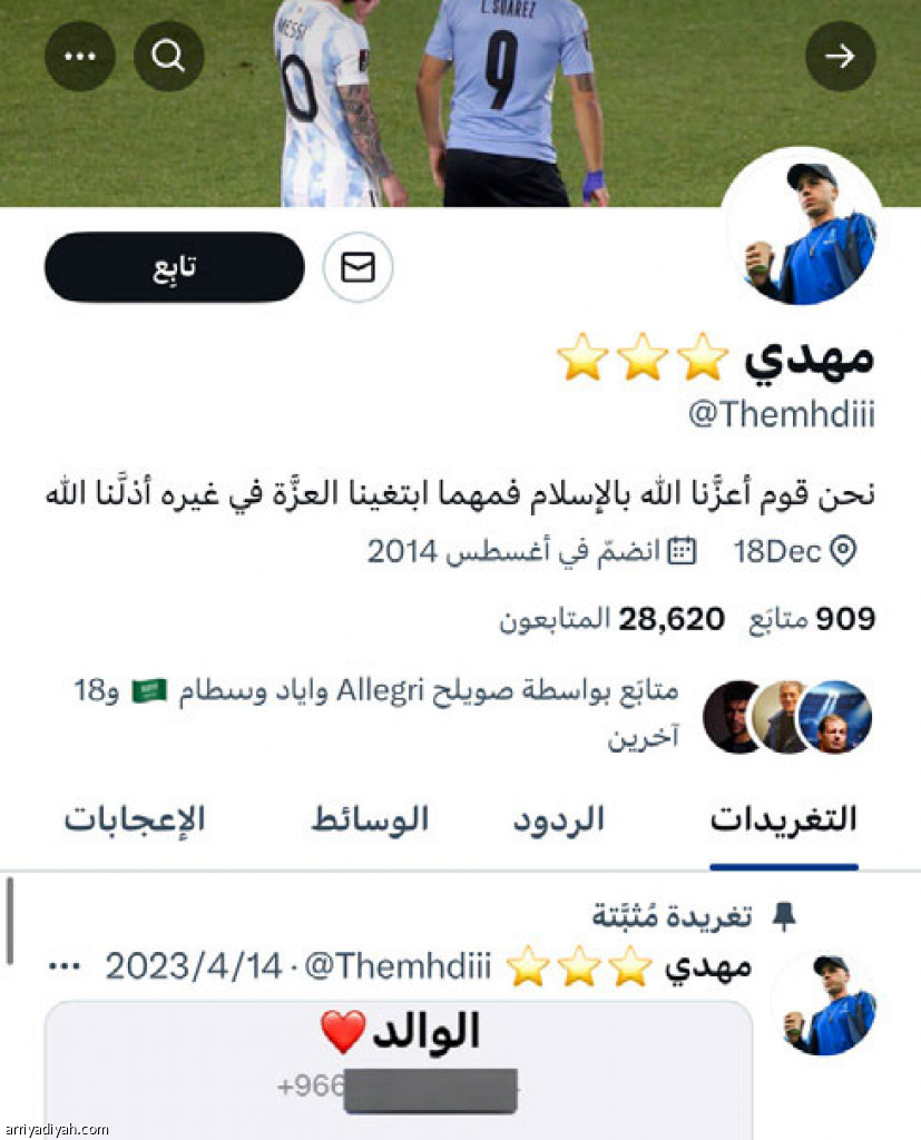 يعدُّ المغرد مهدي، الذي يتابعه نحو 28 ألفًا على منصة “تويتر”، من محبي رياضة كرة القدم.. وفي حواره مع “الرياضية”، تحدَّث عن بداياته في “الطائر الأزرق”.