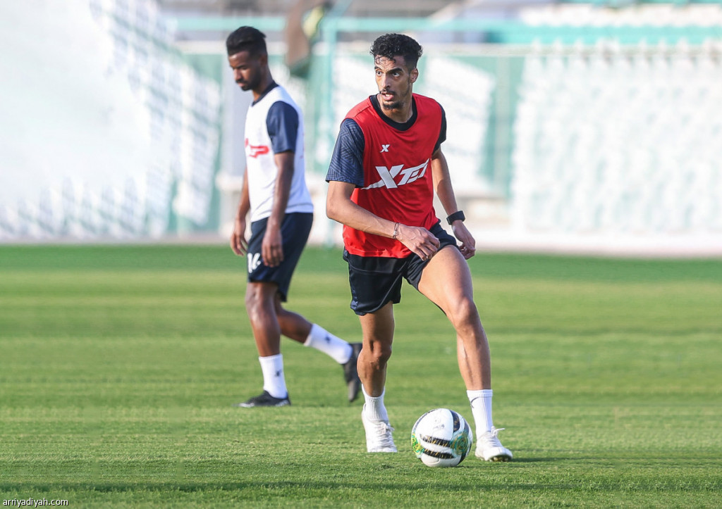 صورة التقطت أمس لعلي الأسمري، لاعب وسط فريق الأهلي الأول لكرة القدم، بحوزته الكرة في المناورة التدريبية بمقر النادي (المركز الإعلامي ـ الأهلي)