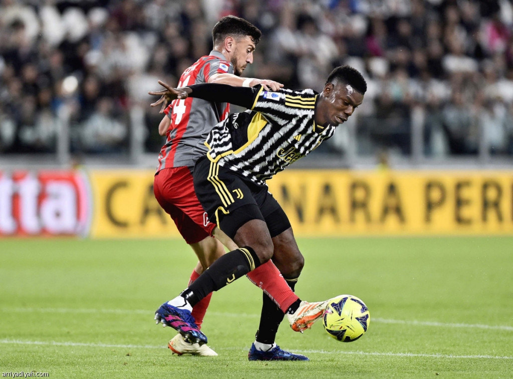 صورة التقطت أمس لبول بوجبا لاعب يوفنتوس في صراع على الكرة مع أليكس فيراري مدافع كريمونيزي خلال مباراة الفريقين (رويترز)