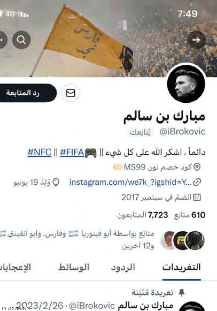 يعدُّ المغرد مبارك بن سالم، الذي يتابعه نحو سبعة آلاف شخص على منصة “تويتر”، من محبي رياضة كرة القدم.. وفي حواره مع “الرياضية”، تحدَّث مبارك عن بداياته في “الطائر الأزرق”.