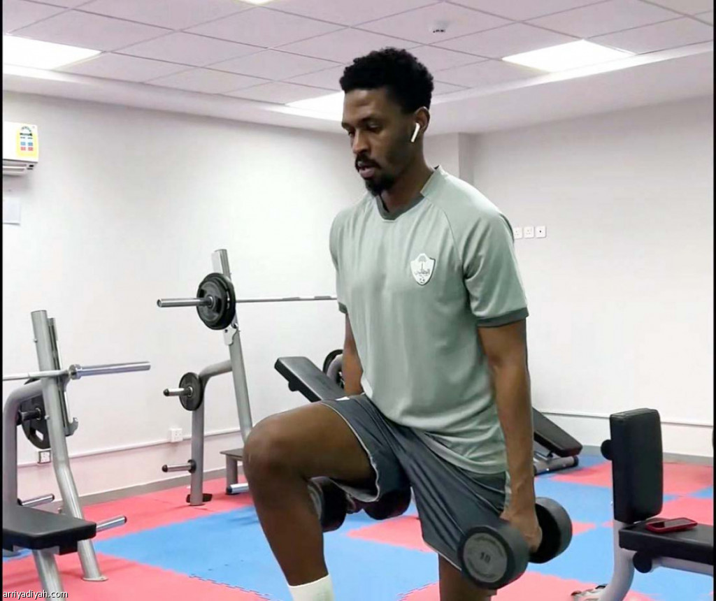 صورة التقطت أمس الأول لعبد المحسن فلاتة، لاعب فريق الطائي الأول لكرة القدم، خلال أدائه تدريبات تقوية (المركز الإعلامي ـ الطائي)