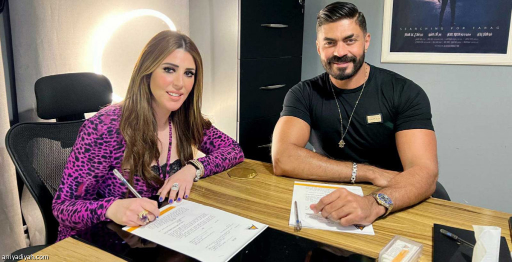 صورة التقطت أمس لخالد سليم والمنتجة آلاء لاشين بعد توقيع العقد (إنستجرام خالد سليم)