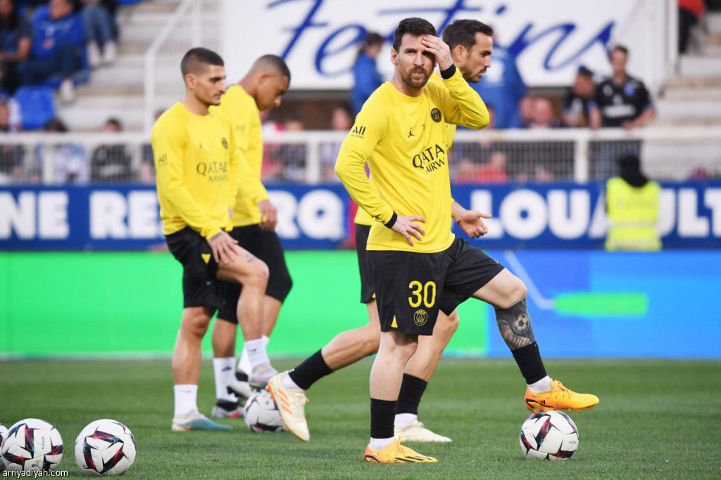 صورة التقطت أمس للأرجنتيني ليونيل ميسي خلال عمليات الإحماء قبل مباراة فريقه باريس سان جيرمان الفرنسي أمام أوكسير (الفرنسية)