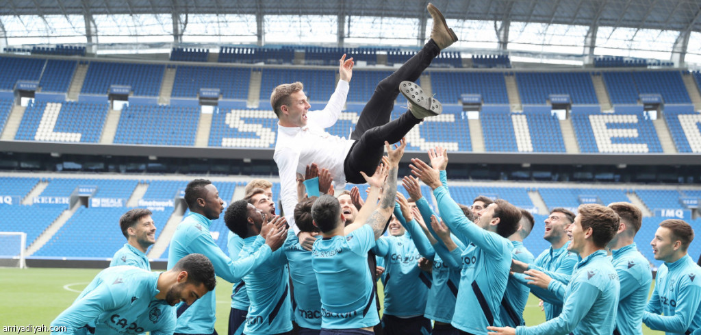 نظم لاعبو فريق ريال سوسيداد الإسباني الأول لكرة القدم احتفالية وداعية لزميلهم آسير إياراميندي لاعب خط الوسط الذي سيغادر النادي بعد 10 أعوام من اللعب مع الفريق في الليجا الإسبانية.