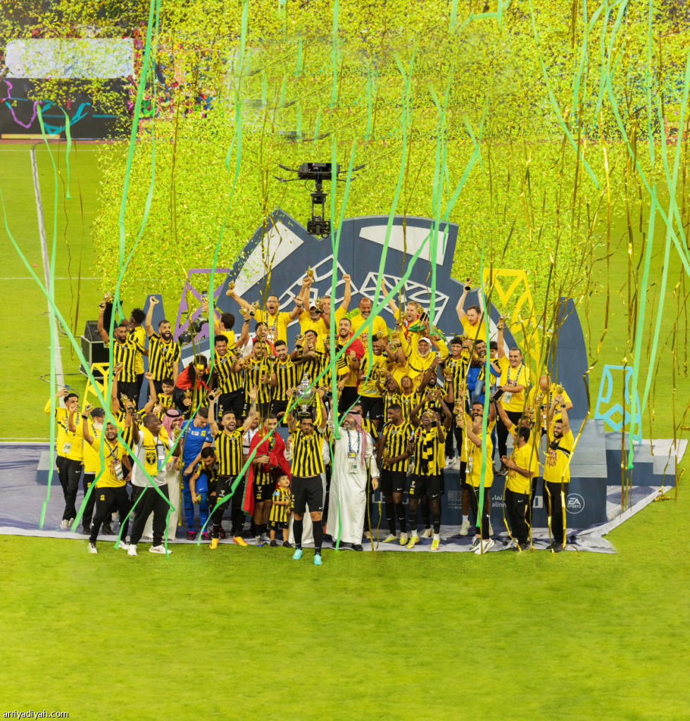 تغنّت الجماهير الاتحادية بفريقها الأول لكرة القدم وشاركت اللاعبين على مدى نحو ساعة ونصف الساعة، في ملعب “الجوهرة المشعة” في جدّة، الاحتفالَ بلقب دوري “روشن” السعودي.