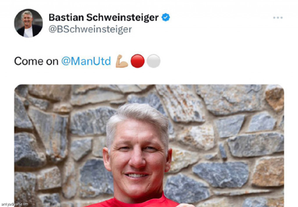 ساند الألماني باستيان شفاينشتايجر، لاعب فريق مانشستر يونايتد الإنجليزي الأول لكرة القدم السابق، ناديه بصورة عبر “تويتر”، ظهر فيها بقميصه قبل نهائي كأس الاتحاد، أمس.