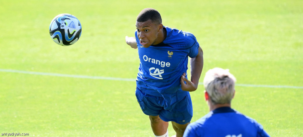 صورة التقطت أمس للفرنسي كيليان مبابي لاعب فريق باريس سان جيرمان الأول لكرة القدم أثناء مشاركته في حصة تدريبية في معسكر منتخب بلاده (الفرنسية)