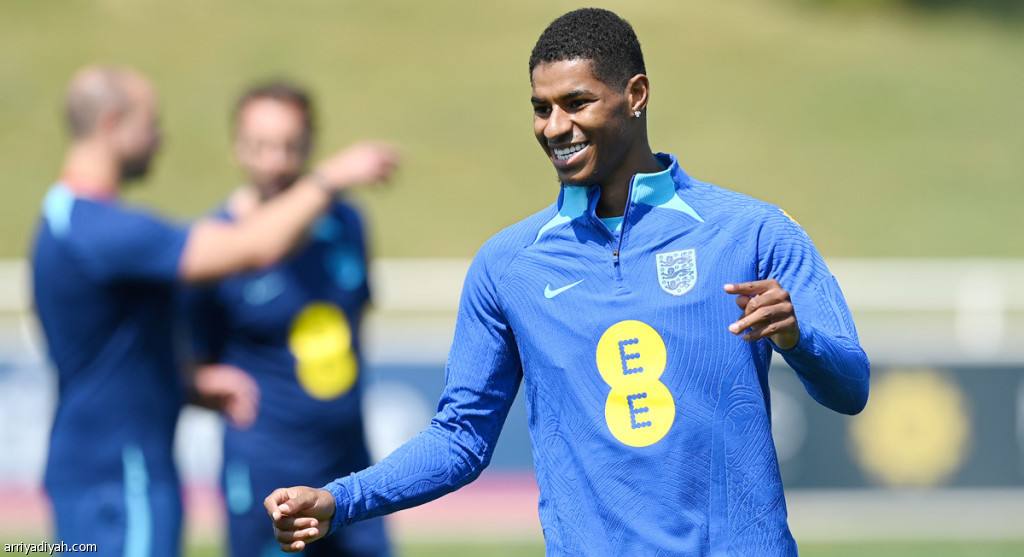 صورة التقطت أمس لماركوس راشفورد مهاجم منتخب إنجلترا الأول لكرة القدم أثناء التدريبات الجماعية(المركز الإعلامي - المنتخب الإنجليزي)