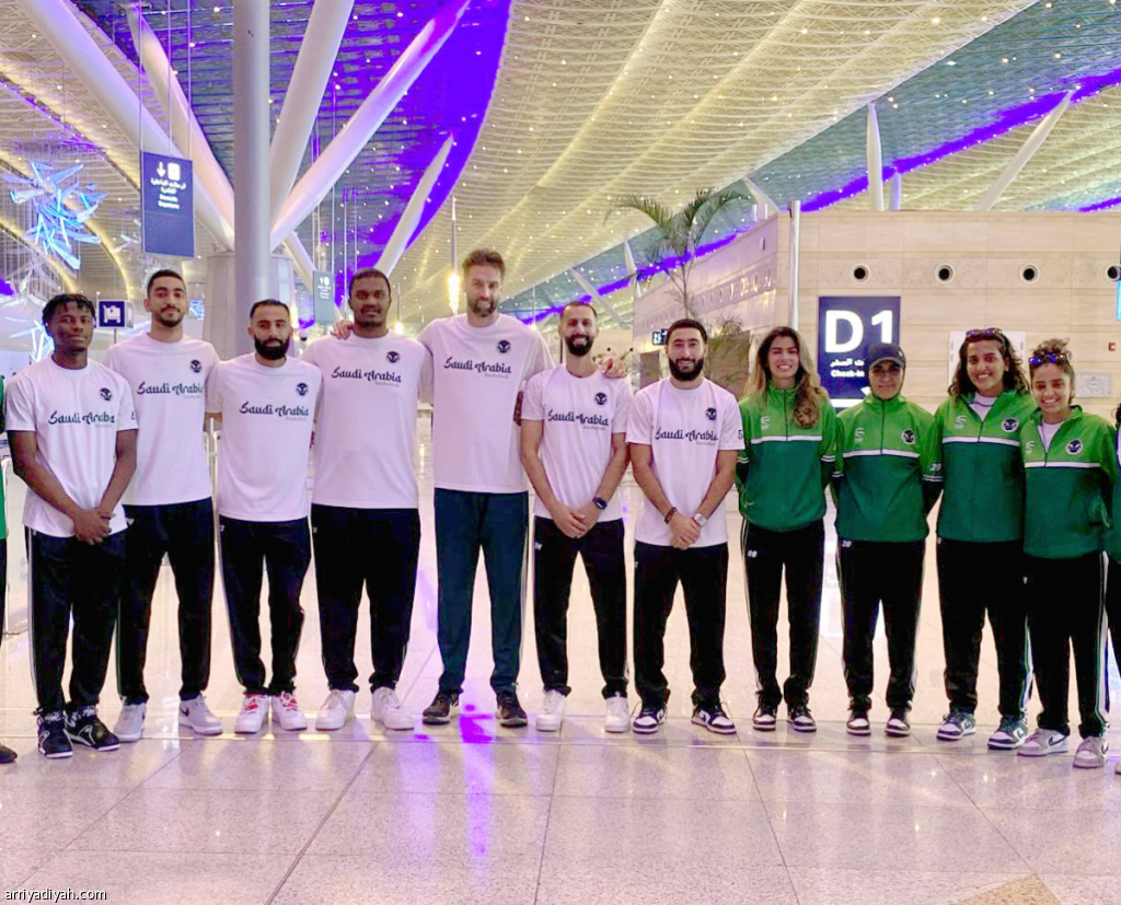 صورة التقطت أمس الأول للمنتخب السعودي للسلة 3×3 قبل انطلاق رحلته إلى الدوحة (المركز الإعلامي ـ اتحاد السلة)