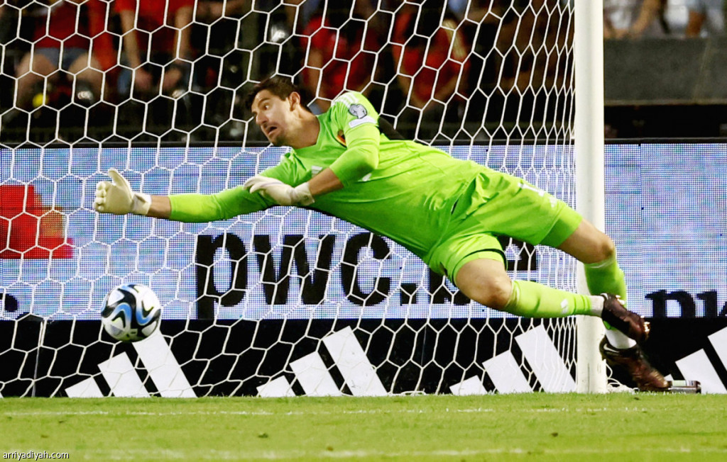 صورة التقطت السبت الماضي لآخر مشاركة للحارس البلجيكي تيبو كورتوا مع منتخب بلاده في مواجهة منتخب النمسا في التصفيات المؤهلة ليورو 2024 (رويترز)