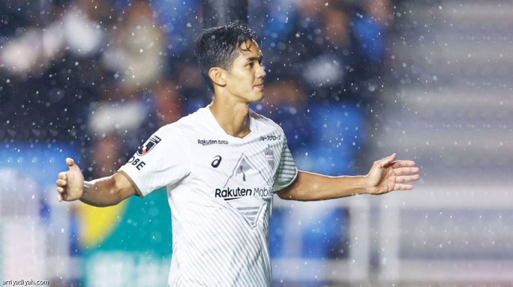 صورة التقطت أمس ليويا أوساكو، لاعب فريق فيسيل كوبي، يحتفل بعد تسجيله الهدف الأول في مرمى فوكوكا (المركز الإعلامي ـ فيسيل كوبي)