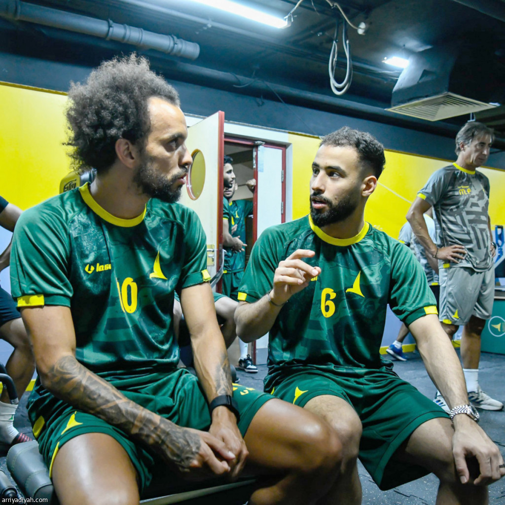 صورة التقطت أمس للبرتغالي فابيو مارتينيز وخالد السميري، لاعبي فريق الخليج، يتحدثان في غرفة الملابس قبل انطلاق التدريبات (المركز الإعلامي ـ الخليج)