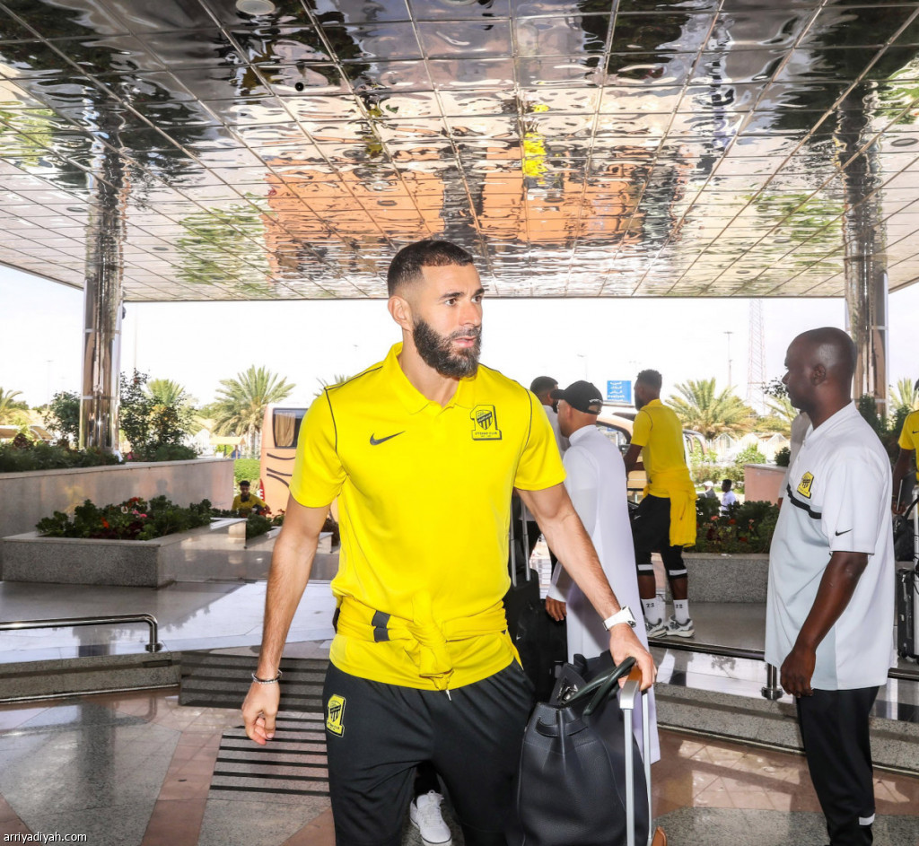 صورة التقطت أمس للفرنسي كريم بنزيما، مهاجم فريق الاتحاد الأول لكرة القدم الجديد، بعد وصوله إلى مقر المعسكر في الطائف (المركز الإعلامي ـ الاتحاد)