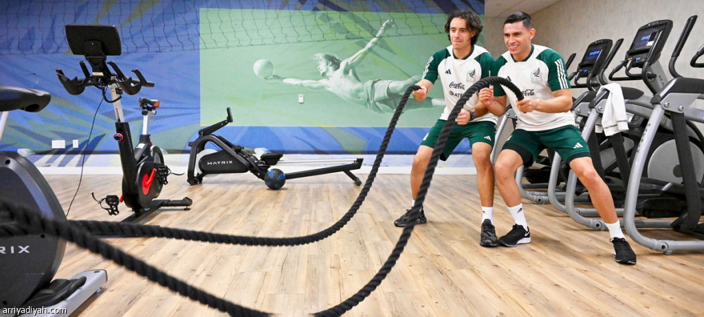 صورة التقطت أمس لتدريبات منتخب المكسيك الأول لكرة القدم التي جرت في الصالة الرياضية قبل مواجهة بنما في نصف نهائي الكأس الذهبية (المركز الإعلامي ـ منتخب المكسيك)