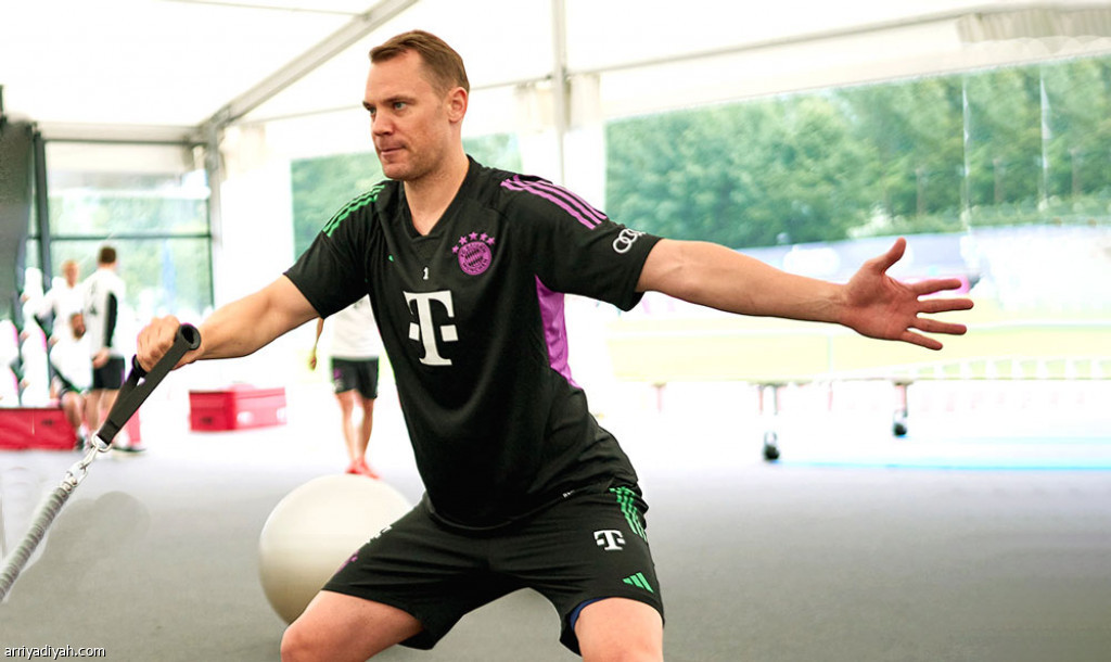 صورة التقطت أمس للألماني مانويل نوير، حارس مرمى فريق بايرن ميونيخ، أثناء تدريبات التقوية(المركز الإعلامي ـ بايرن ميونيخ)