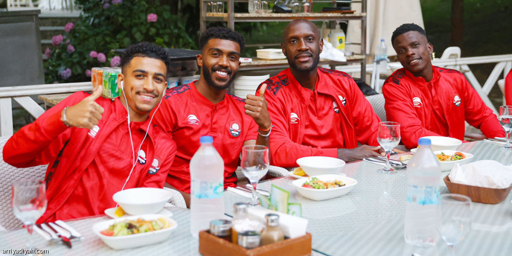 صورة التقطت أمس الأول لعدد من لاعبي الرائد خلال مأدبة العشاء التي أقامتها الإدارة بأحد المطاعم السياحية في مدينة إسكاريا التركية (المركز الإعلامي ـ الرائد)