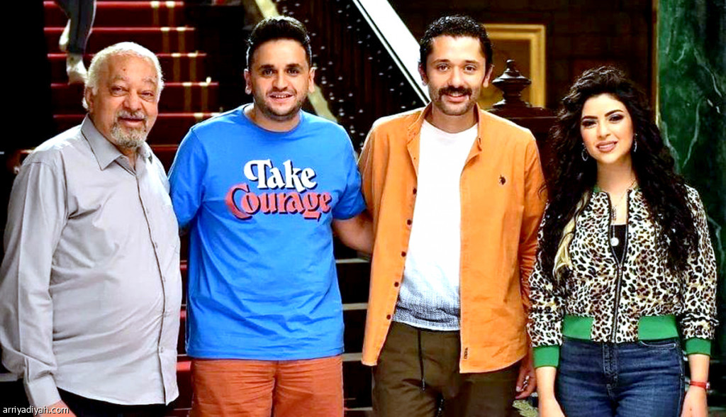 صورة التقطت أمس للفنانين المصريين ميرنا جميل وكريم محمود عبد العزيز ومصطفى خاطر وسامي مغاوري في كواليس تصوير مسلسل “البيت بيتي 2“ (حساب إنستجرام مصطفى خاطر)