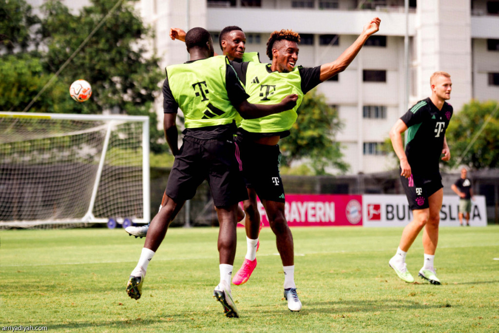 صورة التقطت أمس للاعبي بايرن ميونيخ خلال الحصة التدريبية في سنغافورة (المركز الإعلامي ـ بايرن ميونيخ)
