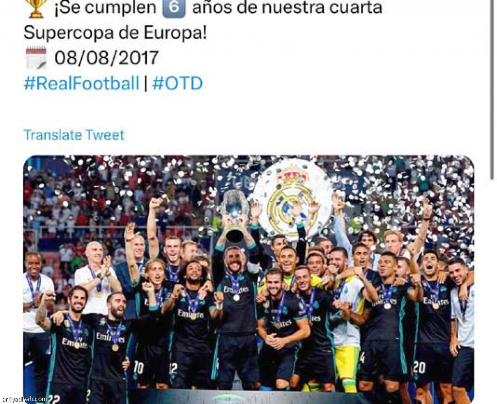 استذكر حساب نادي ريال مدريد الإسباني عبر “إكس”، أمس، صورةً للاعبي الفريق الأول لكرة القدم لحظة تحقيقهم دوري أبطال أوروبا عام 2017.