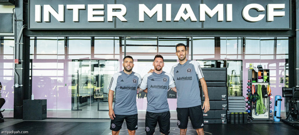 صورة التقطت أمس الأول لليونيل ميسي مع سيرجي بوسكيتس وجوردي ألبا، زميليه في إنتر ميامي (المركز الإعلامي ـ إنتر ميامي)