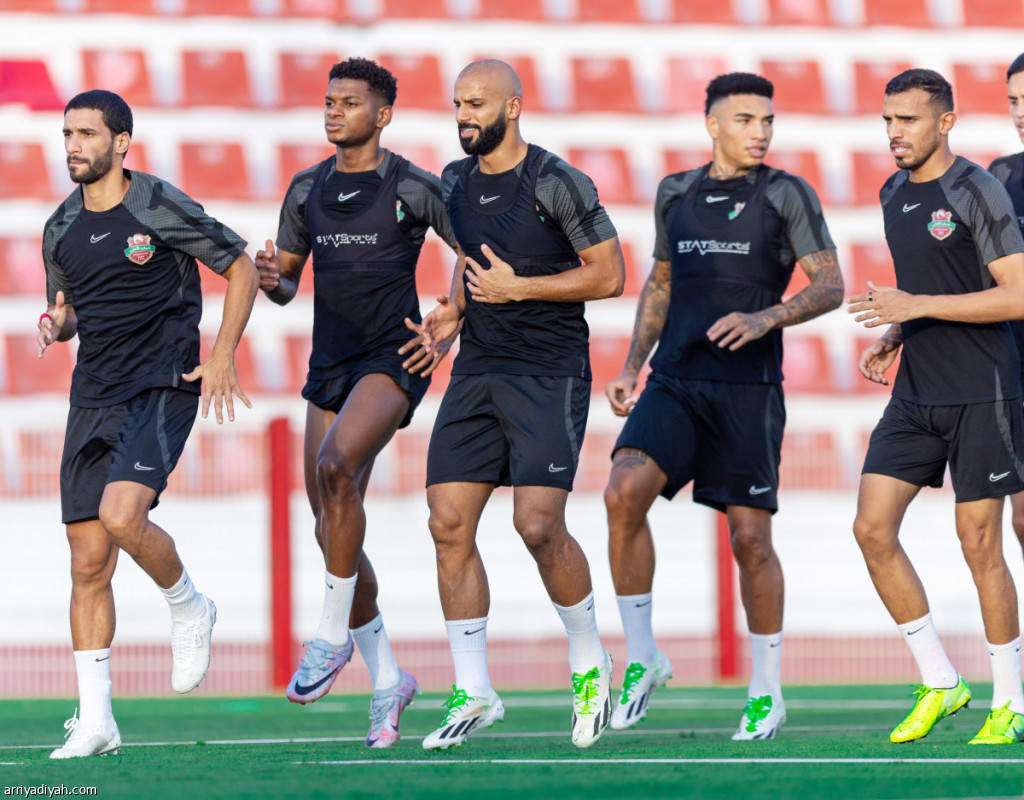 صورة التقطت أمس للبرازيلي إيجور سانتوس ومحمد مرزوق ويحيى الغساني وطارق الحمادي، لاعبي شباب الأهلي دبي، خلال تدريب للفريق على ملعبه في دبي استعدادًا لمواجهة النصر في ملحق دوري الأبطال (المركز الإعلامي ـ شباب الأهلي دبي)