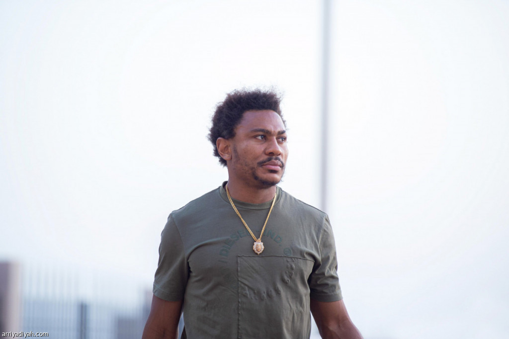 صورة التقطت أمس للكاميروني لياندر تاوامبا، مهاجم التعاون، لحظة وصوله إلى مقر النادي لخوض التدريبات (المركز الإعلامي ـ التعاون)