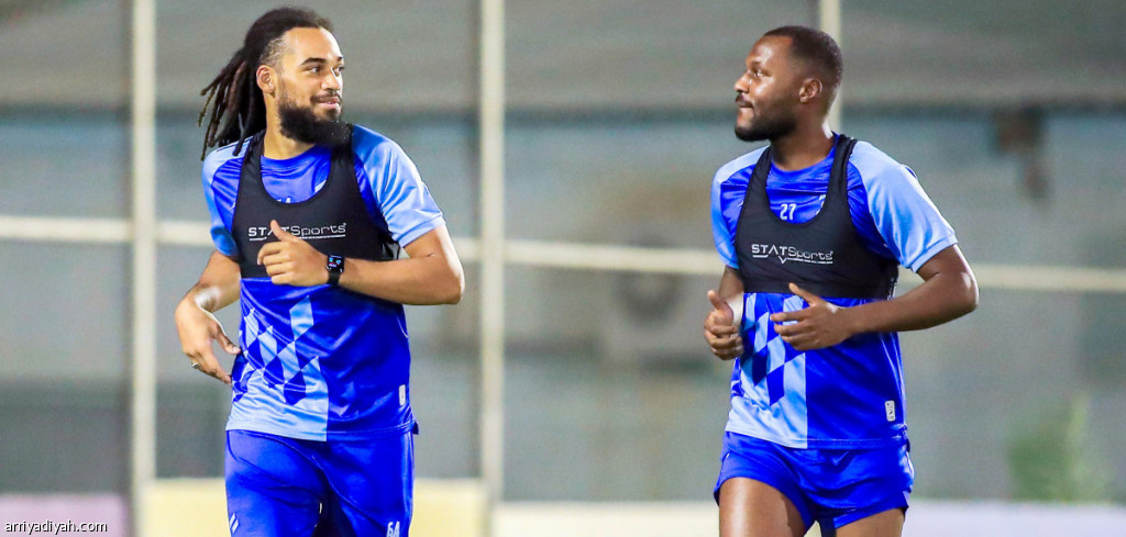 صورة التقطت الأحد الماضي للبلجيكي جيسون ديناير، مدافع الفتح، وعلي الزبيدي، الظهير الأيمن، يركضان سويًا خلال تدريب للفريق على رديف ملعب النادي في المبرز (المركز الإعلامي ـ الفتح)