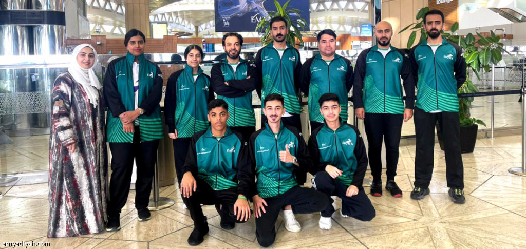 وتضمُّ البعثة خمسة لاعبين، هم فارس آل مدن، حسين المصطفى، خالد الغامدي، أحمد آل جبار وعبد الرحمن الموسى، ولاعبتَين، هما ران الزنان، ومنار البلوي. ويقود المنتخب المدربان فرانسيسكو أوليتا، وعبد الرحمن العمارة.