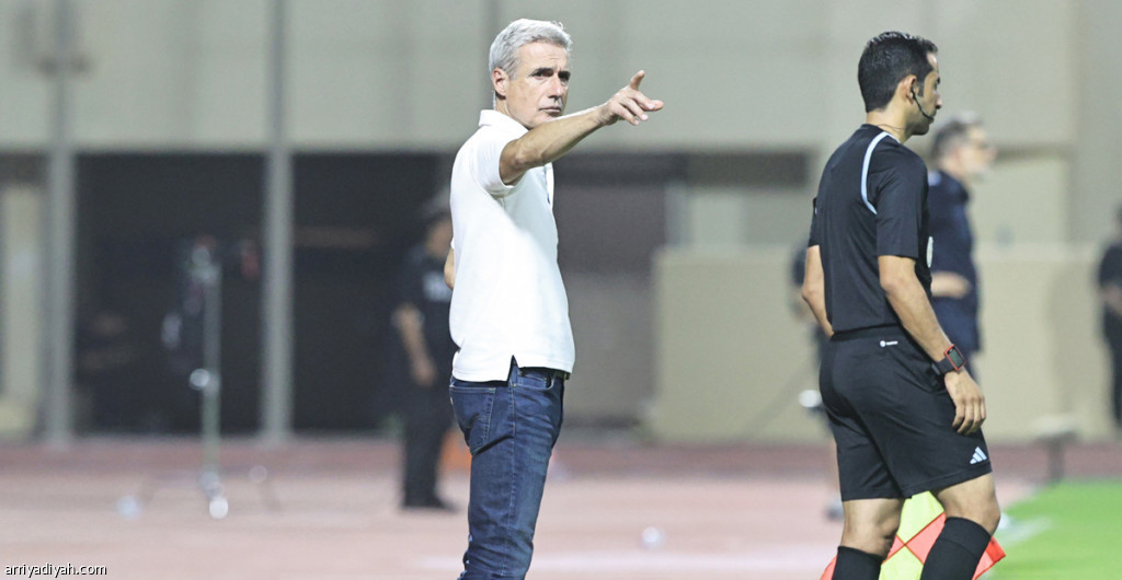 صورة التقطت أمس الأول للبرتغالي لويس كاسترو، مدرب النصر، يتفاعل مع مجريات مباراة فريقه والفتح تصوير: عيسى الدبيسي