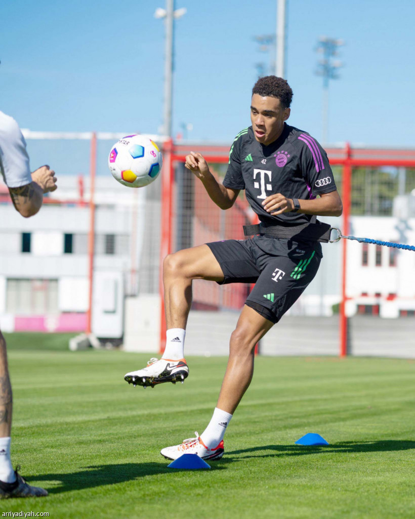 صورة التقطت أمس لجمال موسيالا، لاعب وسط فريق بايرن ميونيخ الألماني، خلال الحصة التدريبية الانفرادية (المركز الإعلامي ـ بايرن ميونيخ)