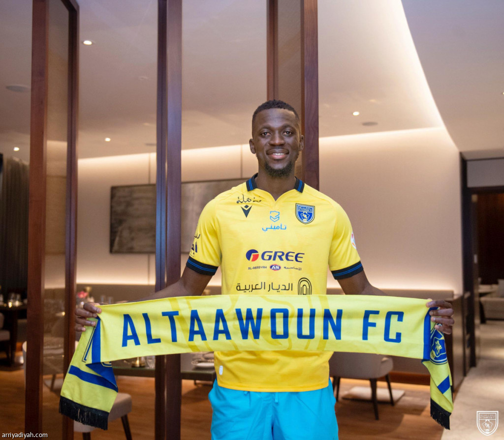صورة التقطت أمس الأول للجامبي موسى بارو يحمل “شال” التعاون بعد توقيعه العقد مع النادي (المركز الإعلامي ـ التعاون)