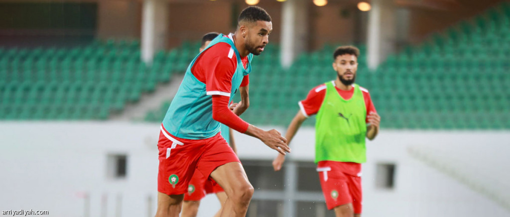 صورة التقطت أمس الأول ليوسف النصيري، مهاجم منتخب المغرب، يستعدُّ لتسديد كرةٍ خلال الحصة التدريبية (المركز الإعلامي - منتخب المغرب)