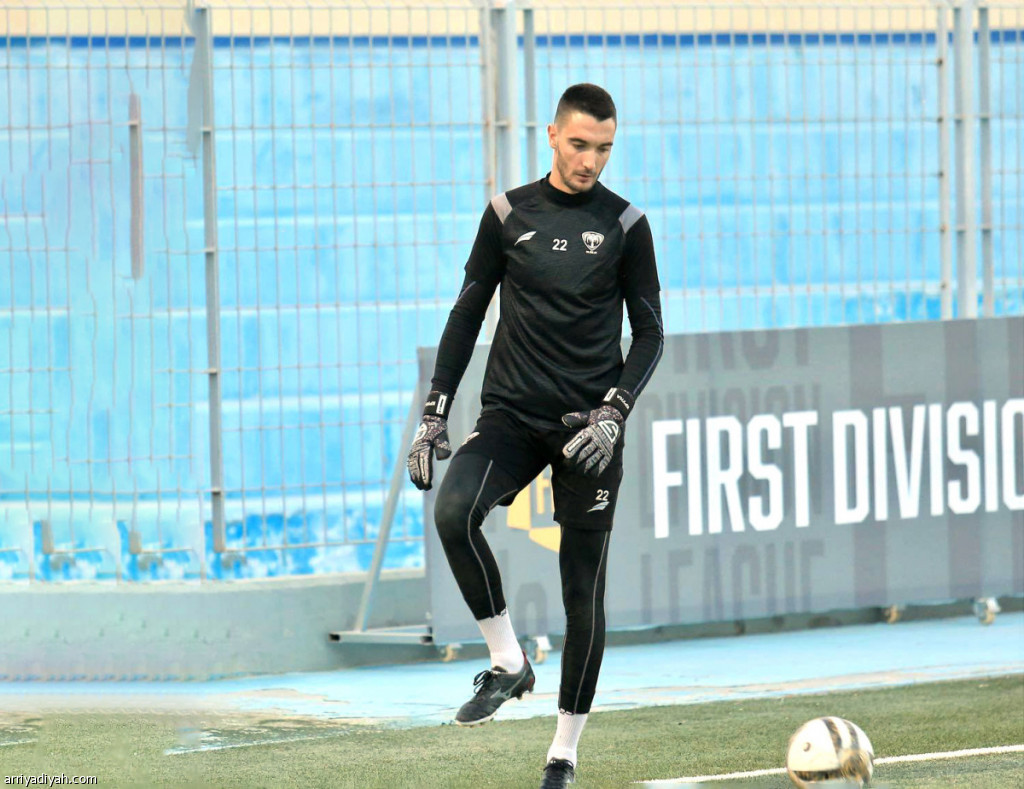 صورة التقطت أمس للصربي ميلوس كرونيتش، حارس مرمى فريق هجر الأول لكرة القدم، خلال التدريبات (المركز الإعلامي ـ هجر)