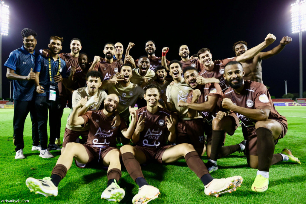 صورة التقطت أمس للاعبي فريق الجبلين الأول لكرة القدم يحتفلون عقب الفوز على جدة (المركز الإعلامي ـ دوري يلو)