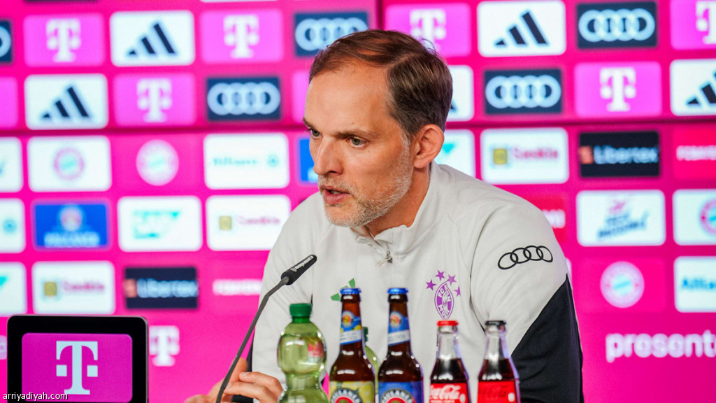 صورة التقطت أمس للألماني توماس توخيل مدرب فريق بايرن ميونيخ يتحدث خلال المؤتمر الصحافي (المركز الإعلامي ـ البايرن)