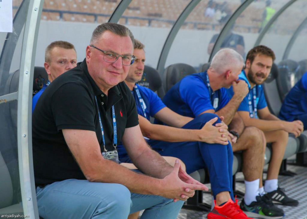 صورة التقطت أمس للبولندي تشيسلاف ميشنيفيتش، مدرب فريق أبها الأول لكرة القدم، خلال متابعته مواجهة الرياض (المركز الإعلامي ـ أبها)