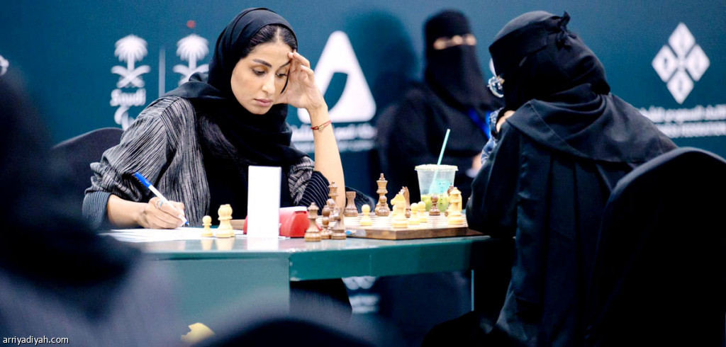 صورة التقطت أمس لمشاركة أثناء تفكيرها بإحدى جولات بطولة السعودية للشطرنج (المركز الإعلامي ـ اتحاد الشطرنج)