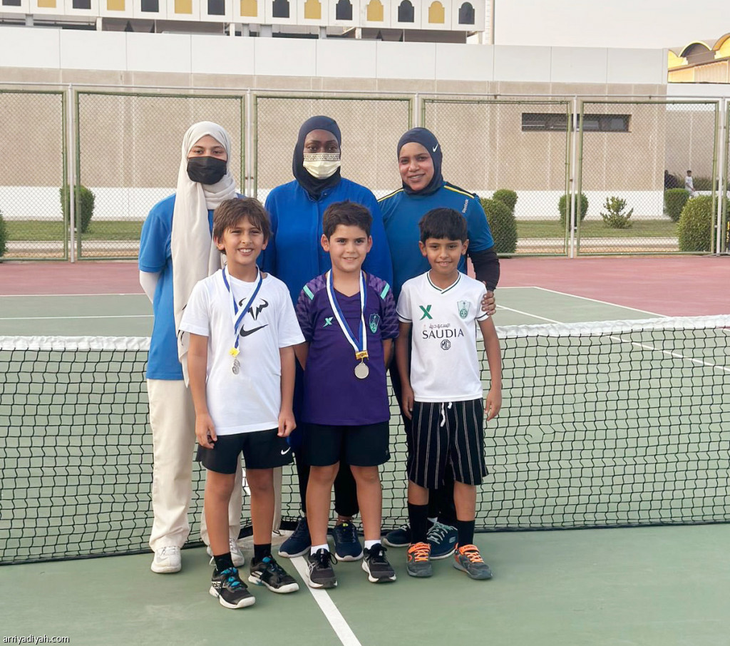 صورة التقطت أمس لأصحاب المراكز الأولى في بطولة المناطق بنسختها الأولى (المركز الإعلامي ـ اتحاد التنس)
