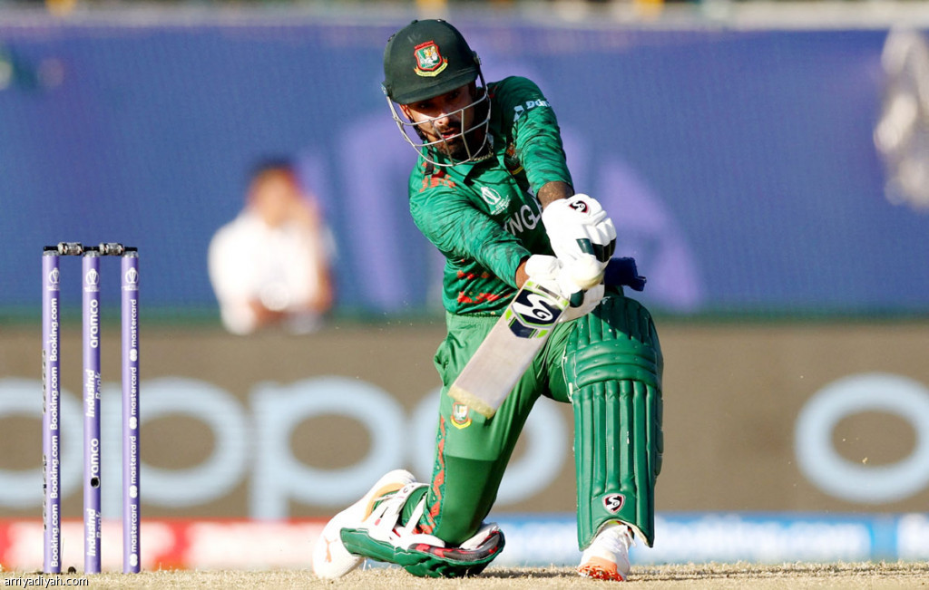 صورة التقطت أمس للبنجلاديشي ليتون داس أثناء تصدّيه لكرة في مباراة منتخب بلاده أمام إنجلترا ضمن منافسات كأس العالم للكريكيت 2023 (رويترز)